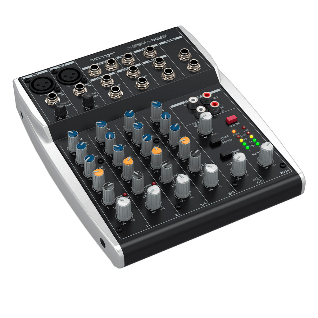 Mezclador analógico premium de 8 entradas con interfaz de transmisión USB Mezclador analógico de ruido ultra bajo para transmisión, podcasting y grabación 2 preamplificadores de micrófono XENYX galardonados para un sonido cálido y musical Interfaz de audio USB estéreo para conectar su computadora o dispositivo móvil Mezcla directa de sonidos de PC/juegos en la salida de transmisión Mezcla analógica y ecualización para un sonido puro Submezclador versátil para dispositivos de audio habilitados para red El canal estéreo 7/8 cambia automáticamente entre la entrada TRS y la reproducción USB Ecualizadores de 3 bandas para un sonido cálido y musical Control de envío de efectos por canal para procesador de efectos externo o mezcla de monitoreo Salidas principales, de monitor, de teléfonos y de transmisión de alta calidad Entradas RCA estéreo asignables a la mezcla principal o salidas de monitor/auriculares.
