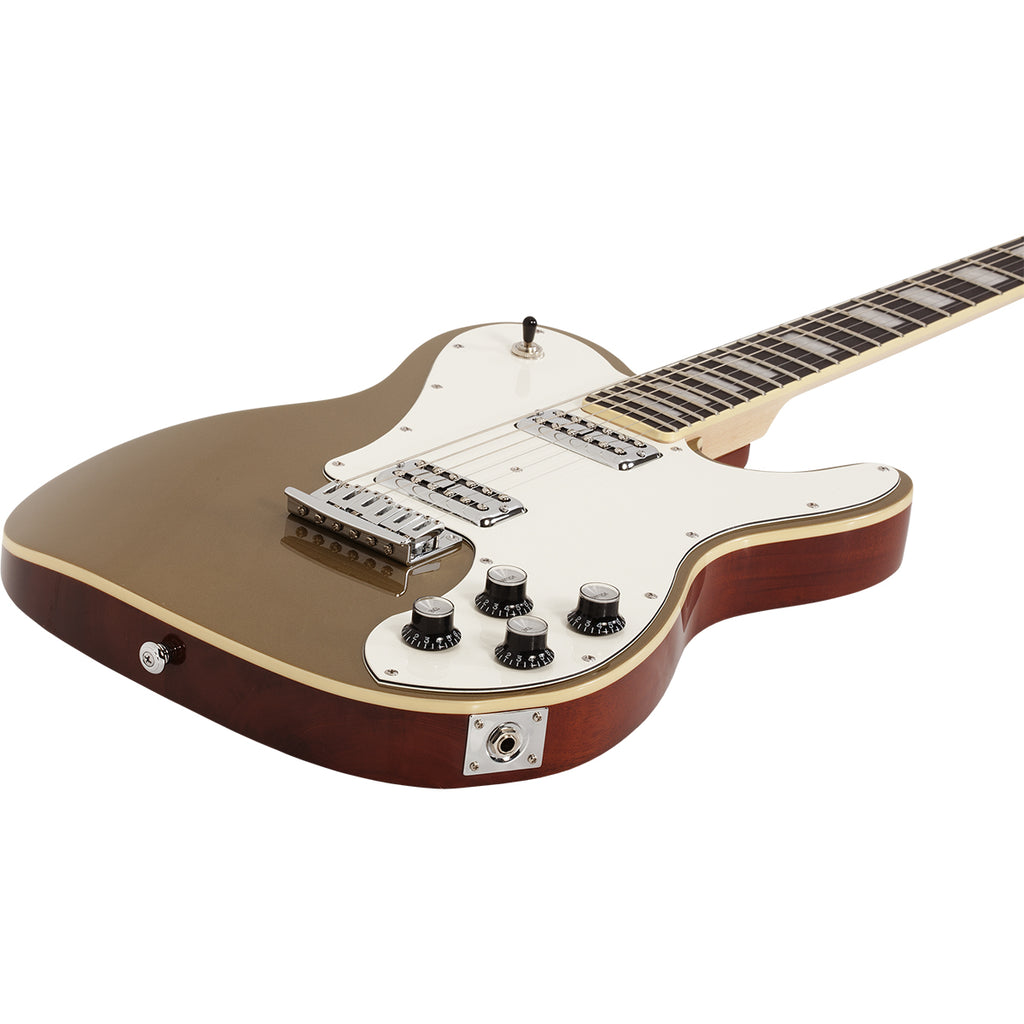Schecter trae ahora esta guitarra eléctrica solida de 6 cuerdas con cuerpo de caoba y tapa plana que incluye hardware cromado y una construcción bolt-on. Viene con un puente Diamond Hardtail y maquinaria Grover. El brazo delgado en forma de C está fabricado con madera de maple y el diapasón con ébano. Recorre 22 trastes X-Jumbo con incrustaciones de bloques. Cuenta con dos volúmenes y dos tonos (Push-Pull) además de un selector de tres posiciones. Para obtener su gran sonido se utiliza una pastilla Schecter Diamond UltraTron en el puente y una pastilla Schecter Diamond UltraTron en el brazo.