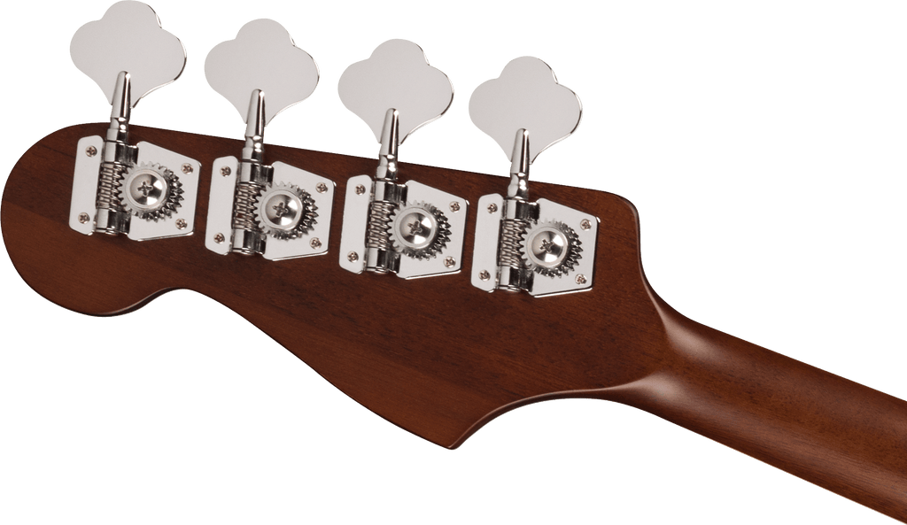 Fabricado con una tapa sólida de pícea reforzada con varetaje en “X” y fondo y aros de sapeli, el cuerpo compacto de tamaño medio tipo auditorium del Kingman™ Bass produce un tono profundo, contundente y articulado, e incluye un cutaway que permite un acceso cómodo a los trastes superiores. El mástil de nato con ribetes presenta elegantes incrustaciones en bloque y está diseñado con un perfil delgado en forma de “C” al estilo Jazz Bass®, una escala corta de 30" fácil de tocar, una cómoda cejilla de 1.5" y una pala con cuatro clavijas en línea que aporta una estética distintiva nacida del ADN de los bajos eléctricos Fender.