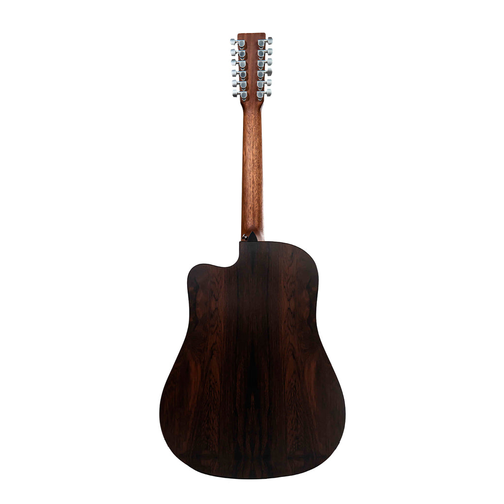 La Martin DC-X2E de 12 cuerdas con corte está diseñada para ofrecer una experiencia al tocar excepcional. Su tamaño de cuerpo Dreadnought es perfecto para cualquier género musical y nivel musical, mientras que las cuerdas adicionales aportan una capa única de brillo, tono y textura. Esta guitarra docerola no solo destaca por su gran sonido, sino también por su durabilidad. Los lados y fondo de este instrumento son de HPL con un elegante patrón de Palo de Rosa de Brasil, mientras que la tapa frontal es de Abeto tallado a mano, agregando tanto resistencia como un tono potente y profundo.