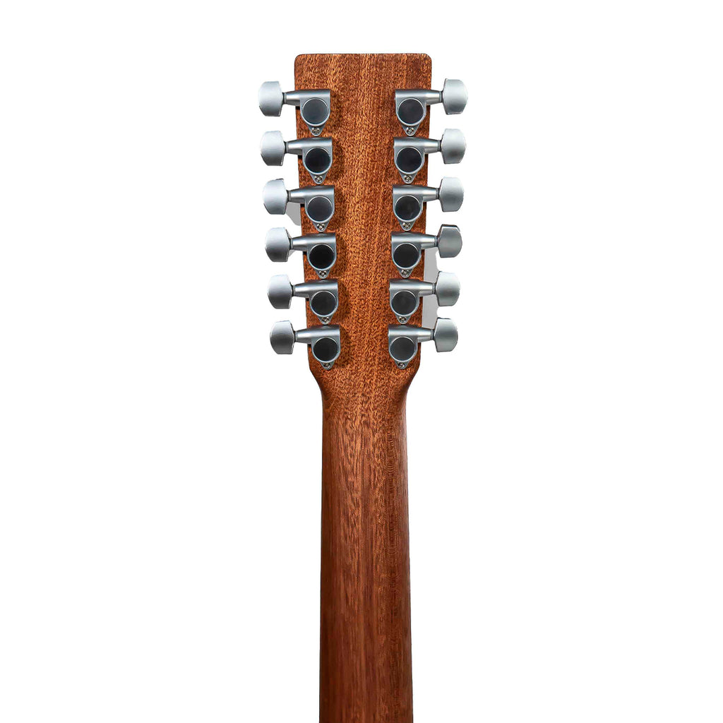 Así mismo, el diapasón de esta Martin docerola es más delgado, con un borde suavemente biselado para mayor comodidad. Al mismo tiempo este instrumento presenta un puente modernizado, brindando una experiencia al tocar fluida y confortable. Además, está equipada con el sistema de amplificación Martin E-1, que incluye un afinador cromático integrado y controles de volumen, tono y fase, haciendo de esta guitarra docerola una opción completa para cualquier músico.