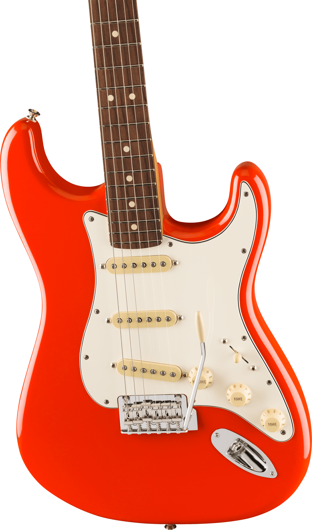 Las pastillas Player Series Alnico V Single-Coil Strat® ofrecen agudos cristalinos, medios musicales y graves definidos que elevan cualquier género. El selector de 5 posiciones te permite pasar de limpios brillantes en la pastilla del mástil a la garra de la pastilla del puente, y todo lo que hay en medio. Además, el trémolo de 2 puntos y las clavijas ClassicGear™ aseguran una afinación precisa y estable, dándote la flexibilidad para explorar infinitas posibilidades sonoras.